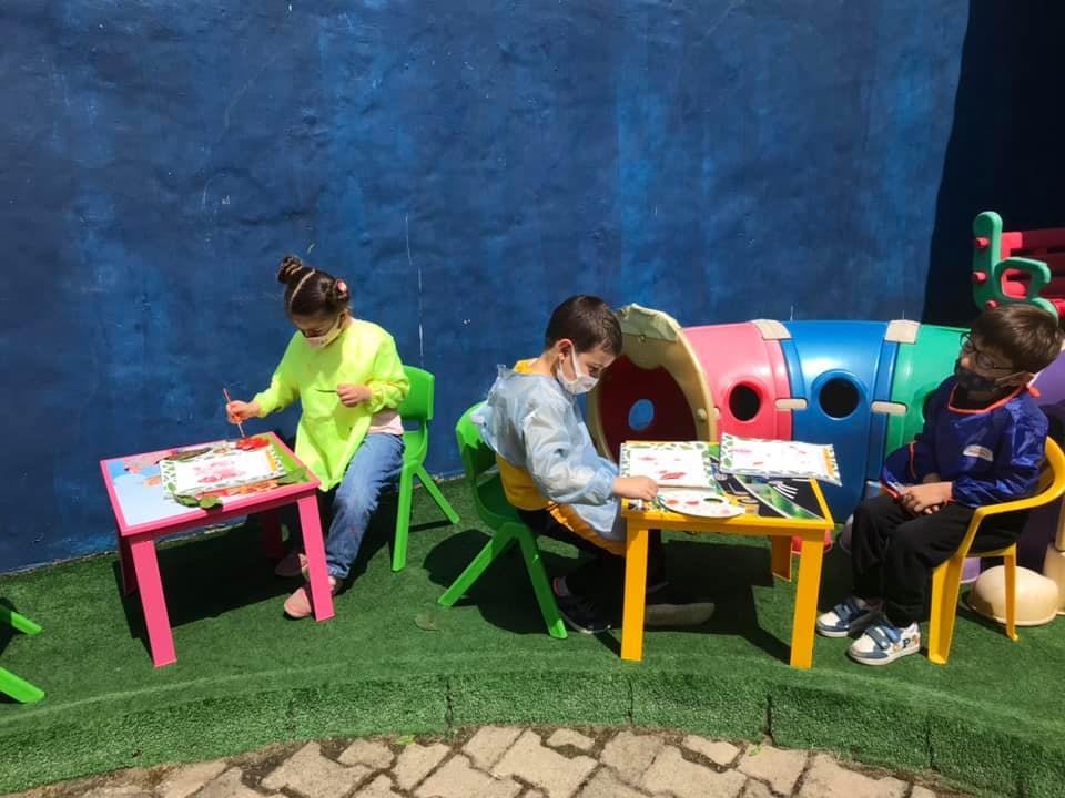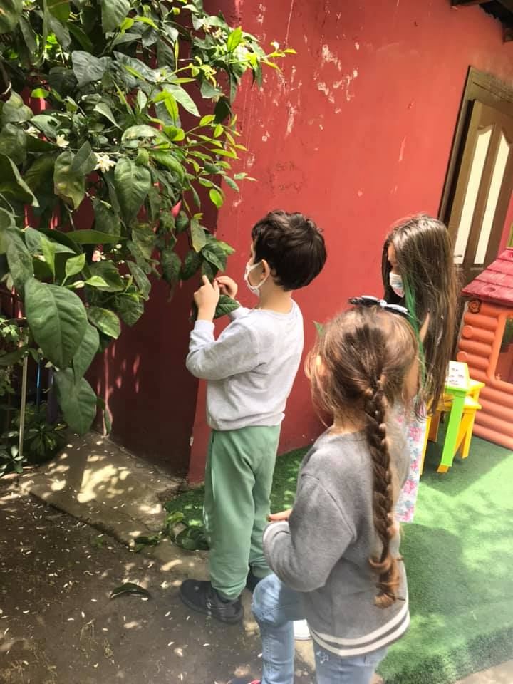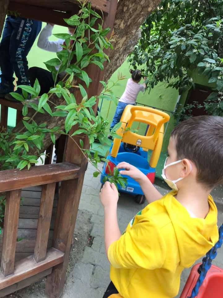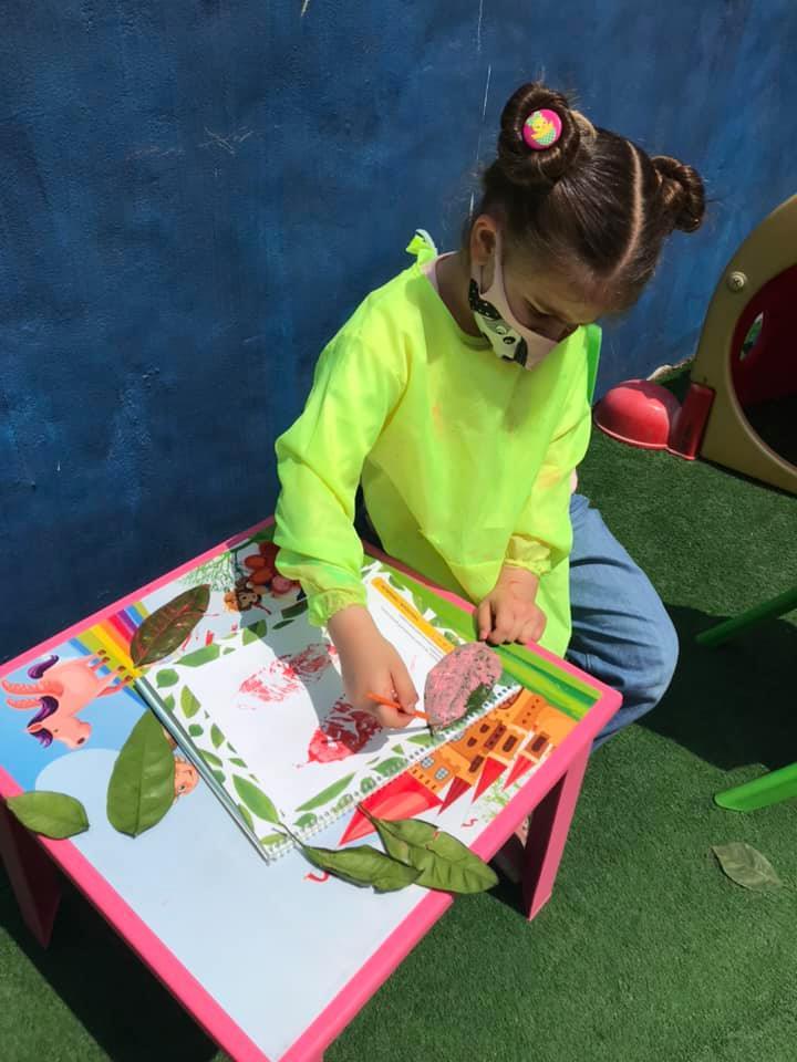 Okulumuzun bahçesinde yaprak toplayıp inceledik. Yaprak baskı çalışması yaptık