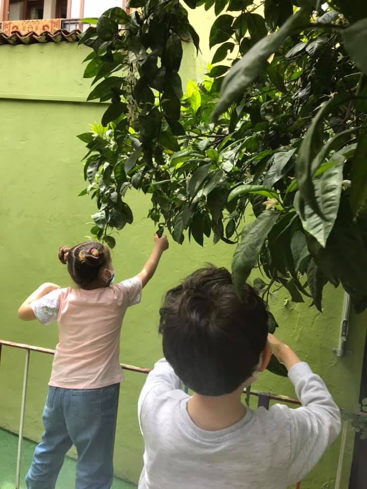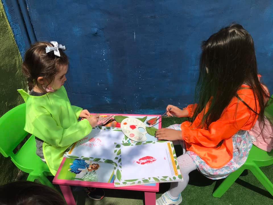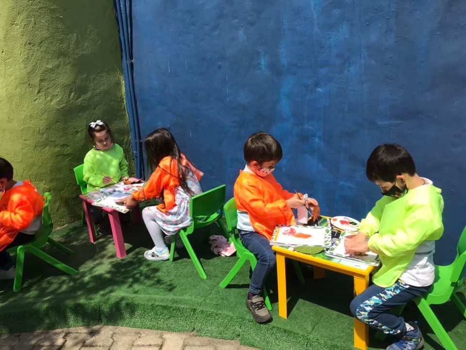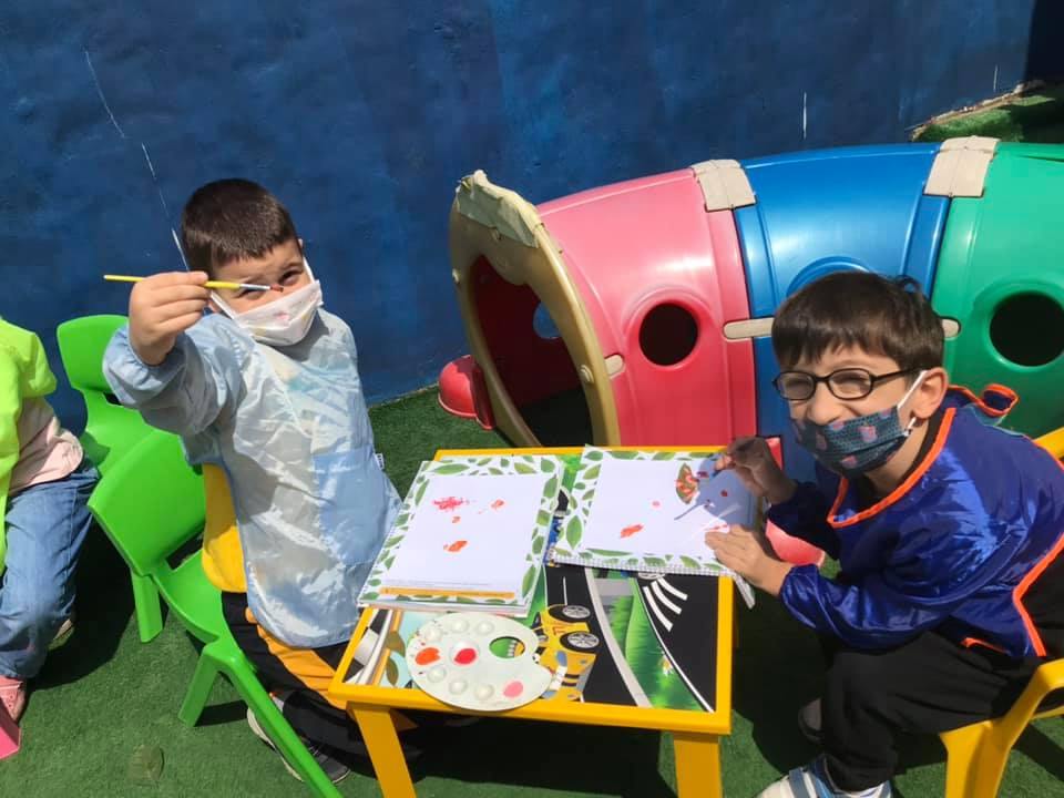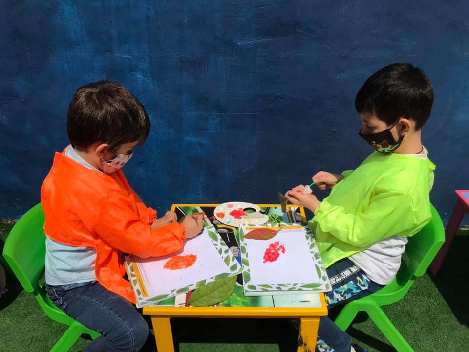 Okulumuzun bahçesinde yaprak toplayıp inceledik. Yaprak baskı çalışması yaptık